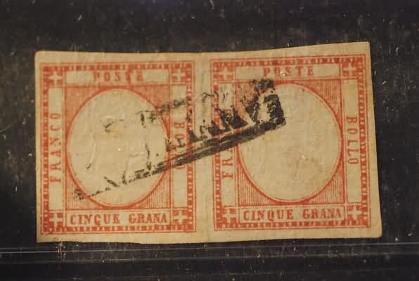 PROVINCE NAPOLETANE - 1861, 5 gr. rosso carminio (21) coppia orizzontale. Da esaminare. (A. Diena).(USATO)