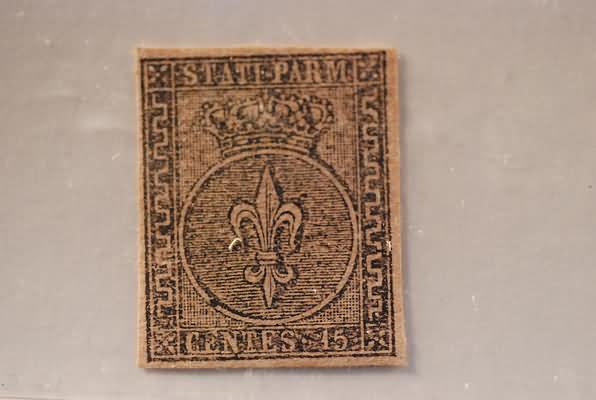 PARMA - 1852, 15 c. rosa (3) aderente in parte al frammento di carta ma non colpito dall'annullo.(SENZA GOMMA)