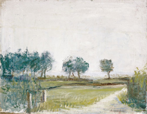 ADRIANO SPILIMBERGO Buenos Ayres (Argentina) 31/07/1908 - Milano 26/12/1975 Campagna, 1960 olio su tela cm. 34x44, firma in basso a destra, etichetta della Galleria Ponte Rosso (MI) al retro, dichiarazione d'autenticità della Galleria Ponte Rosso (MI) su foto.