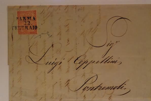 PARMA - 1855, 15 c.vermiglio (7) su lettera da Parma per Pontremoli il...