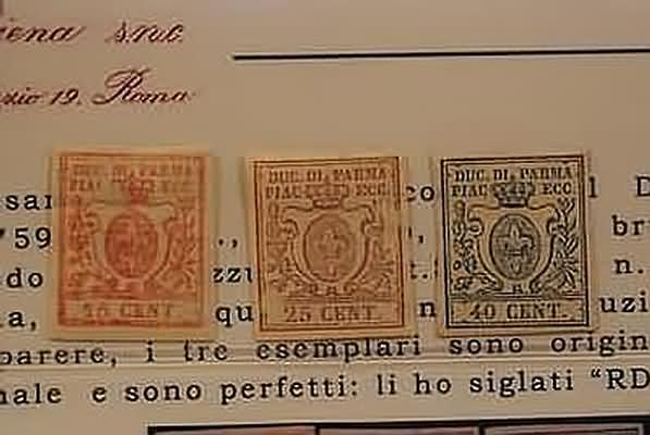 PARMA - 1857-59, III emissione 3 valori cpl. (9/11). (Cert. R. Diena).(GOMMA ORIGINALE)