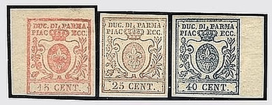 PARMA - 1857-59, III emissione, 3 valori cpl. (9/11). (Em. Diena....