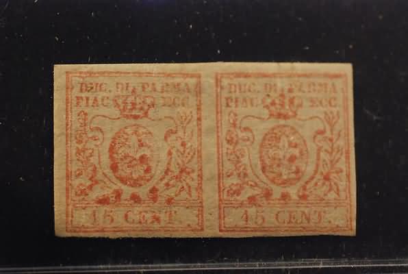 PARMA - 1859, 15 c.vermiglio (9) coppia orizzontale. (A.Diena -...