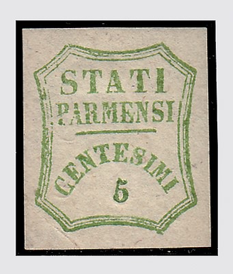 PARMA - 1859, Governo provvisorio, 5 c. verde giallo (13). (Mezzadri, G....