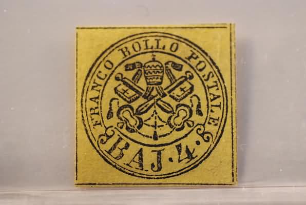 STATO PONTIFICIO - 1864, 4 baj giallo (5A), da esaminare. (G. Oliva).(GOMMA ORIGINALE)