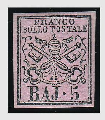 Lotto 782 | STATO PONTIFICIO - 1852, 5 baj rosa chiaro (6). Molto fresco. (A. Diena. G....