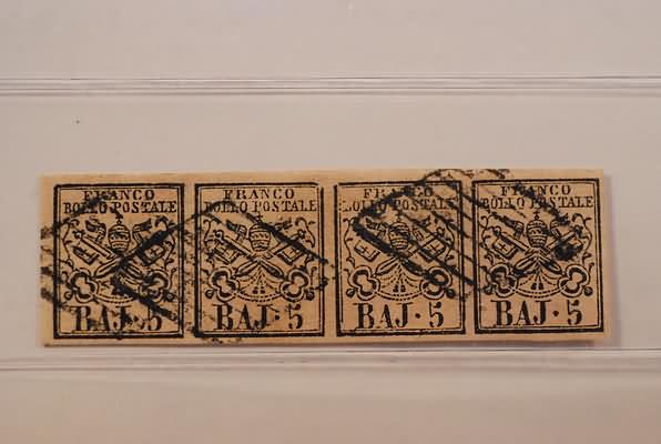 Lotto 784 | STATO PONTIFICIO - 1852, 5 bay rosa chiaro (6) striscia orizzontale di 4....