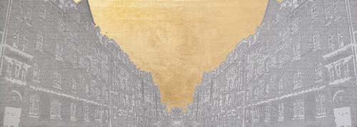 LEONIDA DE FILIPPI Milano 17/04/1969 Paesaggio urbano, 2011 foglia oro e...