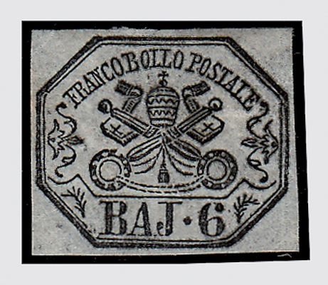 STATO PONTIFICIO - 1852, 6 baj grigio (7a) nuovo, rara sottotinta. (Cert. E....