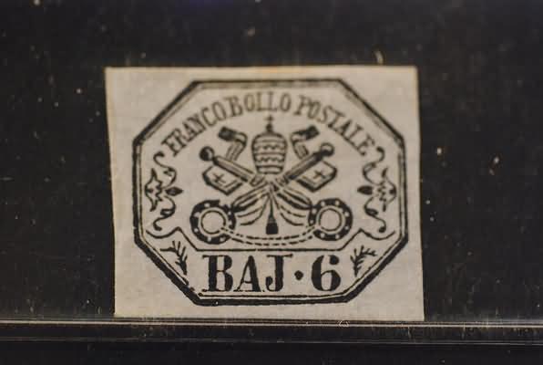 STATO PONTIFICIO - 1852, 6 baj lilla grigio (7A) senza gomma.(SENZA GOMMA)