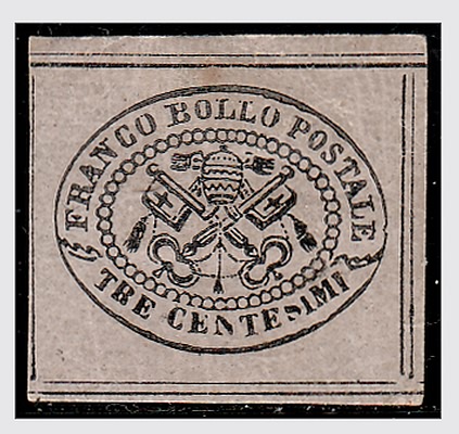 Lotto 832 | STATO PONTIFICIO - 1867, 3 c. grigio rosa (14) fresco esemplare con grandi...