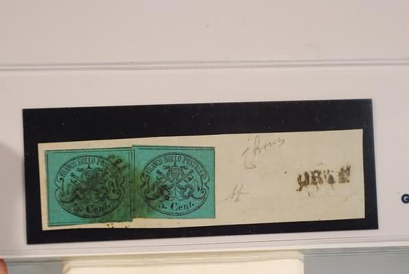 Lotto 845 | STATO PONTIFICIO - 1867, 5 c. azzurro verdastro (16) due esemplari su...