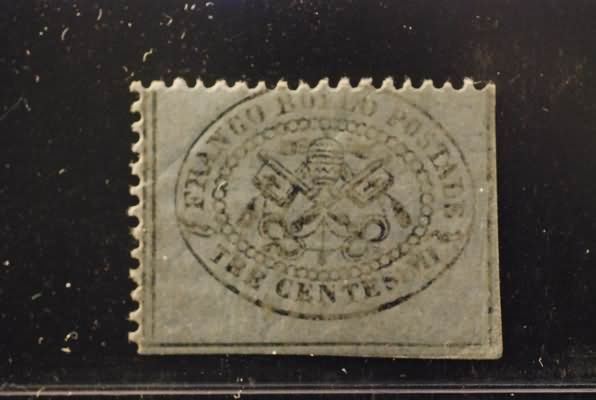 STATO PONTIFICIO - 1868, 3 c.grigio (24) esemplare con gomma integra.(GOMMA...