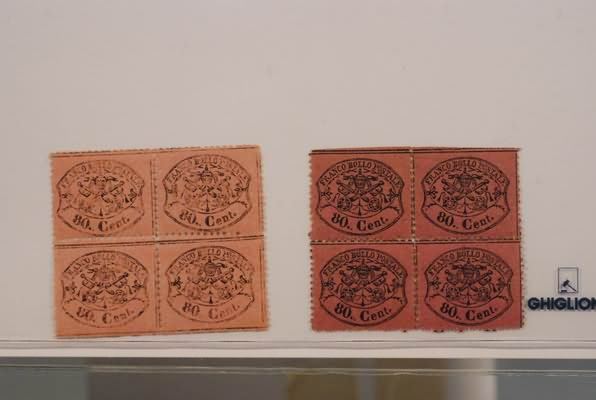 STATO PONTIFICIO - 1868, 80 c.rosa chiaro (30) + 80 c.lilla rosso (31) entrambi in blocchi di quattro.(GOMMA ORIGINALE)