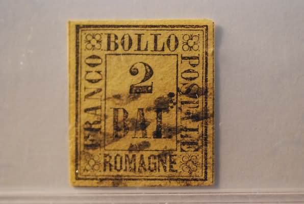 ROMAGNE - 1859, 2 baj giallo arancio (3). (Em. Diena, A. Diena).(USATO)