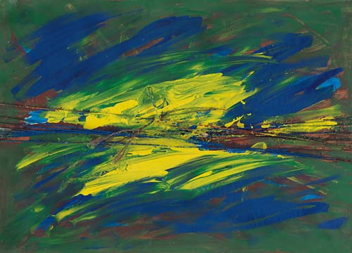 PAUL CHARMANT Parigi 04/07/1950 Meteora legata, 2005 acrilici e corda su tela cm. 50x70, titolo, firma e anno al retro, dichiarazione d'autenticità dell'artista su foto.