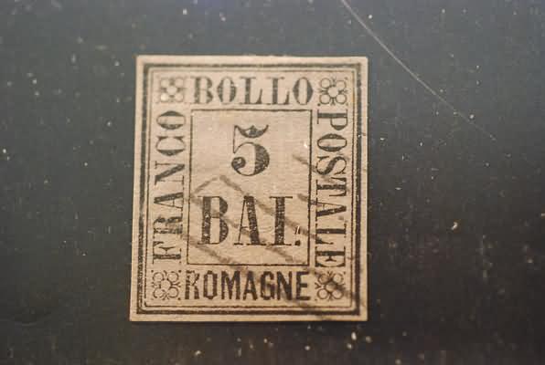 ROMAGNE - 1859, 5 baj violetto (6). Punto bianco. (Em. Diena).(USATO)