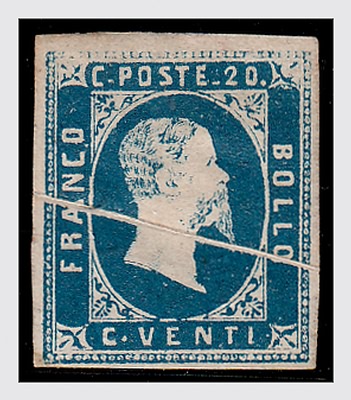 REGNO DI SARDEGNA - 1851, 20 c.azzurro (2) nuovo e ben marginato con la rara...
