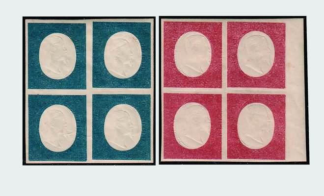 REGNO DI SARDEGNA - 1854, Non emessi, 20 c.indaco e 40 c.rosso mattone (11/12) in blocchi di quattro di splendida qualità. (Em.Diena - G.Oliva).(GOMMA INTEGRA)