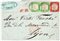REGNO DI SARDEGNA - 1856, 5 c. verde pisello (13c) coppia orizzontale a filo in basso + 40 c. vermiglio scuro (16b) nitidamente annullati su lettera da Torino per Lione, 13/2/56. Lettera rara e di pregio. (Cert. Sorani "buono stato").(LETTERA)