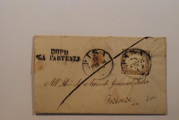 REGNO DI SARDEGNA - 1861, 10 c. bruno grigio olivastro (14B) su lettera da Pisa per Firenze, 16/3/61. Bollo d'arrivo del 17/3/61.(LETTERA)