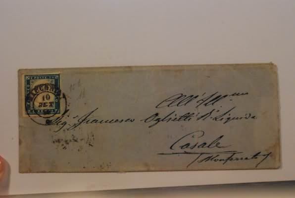 REGNO DI SARDEGNA - 1856, 20 c. cobalto (15) su bustina da Racconigi per...