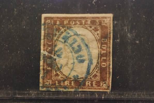 Lotto 1049 | REGNO DI SARDEGNA - 1861, 3 lire rame (18), riparato, annullo azzurro di...