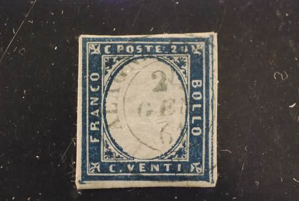 REGNO DI SARDEGNA ANNULLAMENTI - 1861, ALAGNA (Lomell.a) (p.R.1) doppio cerchio azzurro in data 24/1/61. Piega diagonale.(USATO)