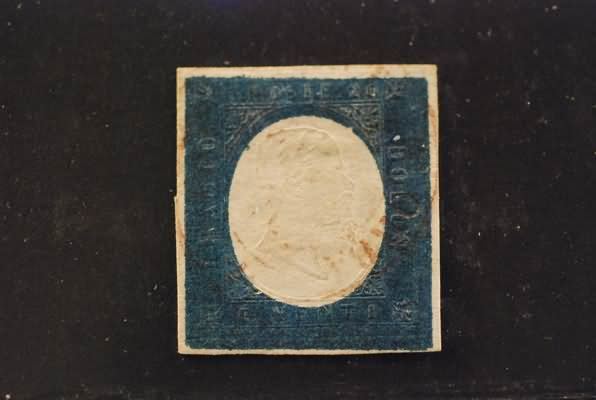 REGNO DI SARDEGNA ANNULLAMENTI - 1854, CASTELLETTO D'ORBA, doppio cerchio rosso (p. 13) poco impresso su 20 c. azzurro (8). Raro. (Cert. A. Diena).(USATO)