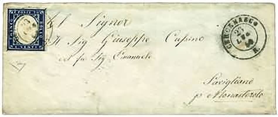 REGNO DI SARDEGNA ANNULLAMENTI - 1860, CERCENASCO (p.R3) su 20 c.azzurro...