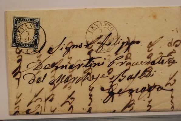REGNO DI SARDEGNA ANNULLAMENTI - 1857, LEVANTO dppio cerchio (p.3) su 20 c.azzurro grigiastro il 7/9/57 su lettera per Genova. Esemplare freschissimo.(LETTERA)
