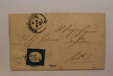 REGNO DI SARDEGNA ANNULLAMENTI - 1855, MOMBERCELLI (p. 7) su 20 c. (8) su lettera per Asti, 9/3/55. (E. Diena. Gaggero).(LETTERA)