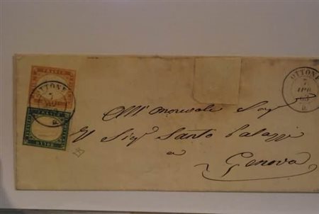 REGNO DI SARDEGNA ANNULLAMENTI - 1863, OTTONE (p. 7) su 5 c. + 10 c. (13Db+14De) su lettera per Genova, 7/4/63.(LETTERA)