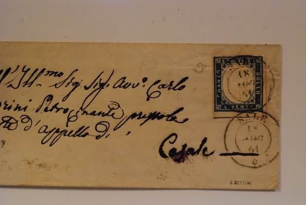 Lotto 1188 | REGNO DI SARDEGNA ANNULLAMENTI - 1861, SALE (p. 5) su 20 c. (15D) su bustina...