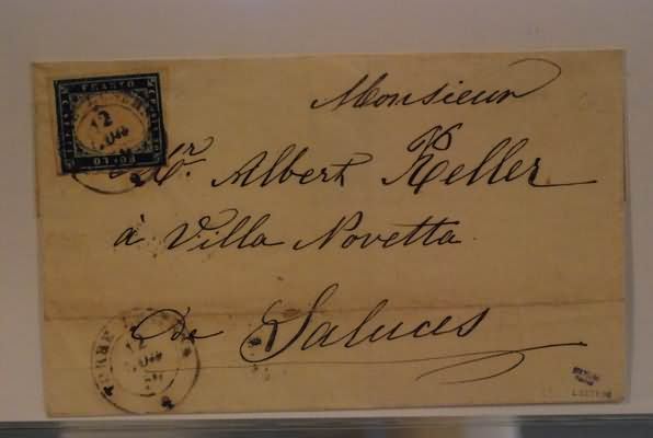 REGNO DI SARDEGNA ANNULLAMENTI - 1859, TORRE LUSERNA (p.7) su 20 c.cobalto oltremare (15Ba) lettera per Saluzzo il 12/7/59.(LETTERA)