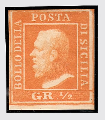 SICILIA - 1859, 1/2 gr. arancio II tavola (2) posizione n.92, bell' esemplare.(GOMMA ORIGINALE)
