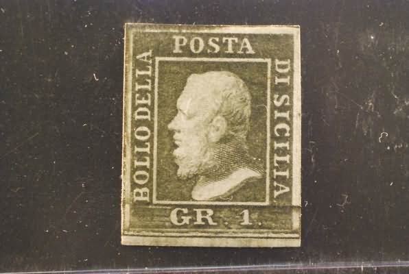 SICILIA - 1859, 1 gr. verde oliva scuro, III tavola (5c) pos. n.93...