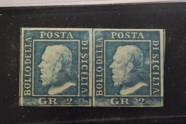 SICILIA - 1859, 2 gr. azzurro chiaro III tavola (8) coppia, posizioni ni....