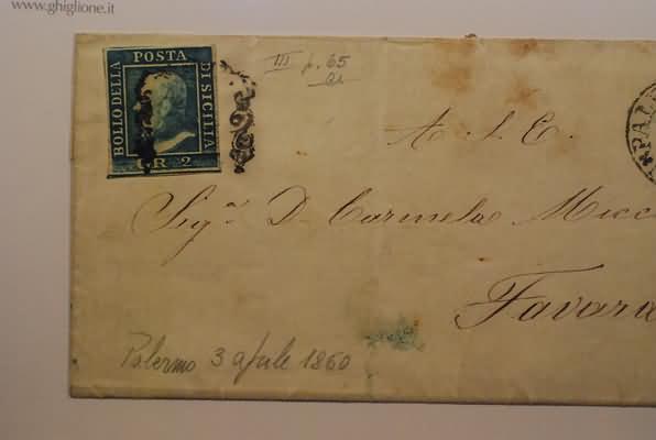 SICILIA - 1859, 2 gr. azzurro chiaro III tavola (8) su lettera da Palermo per...