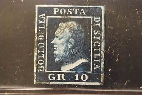 SICILIA - 1859, 10 gr. azzurro cupo (12), molto bello.(USATO)