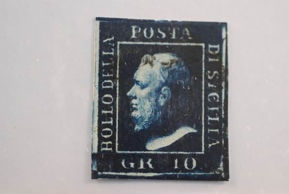 SICILIA - 1859, 10 gr. azzurro cupo (12), molto bello, accenno di leggera piega, posizione n.55. (A. Diena). (Cert.G. Bolaffi).(USATO)