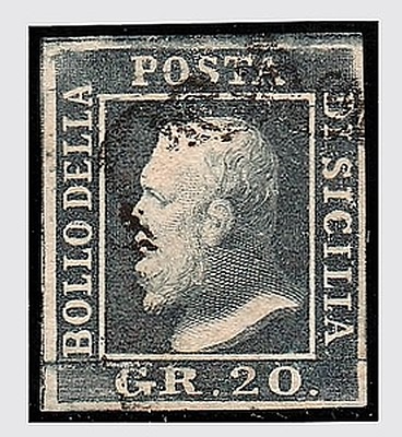 Lotto 1335 | SICILIA - 1859, 20 gr. grigio ardesia (13). (Em. Diena).(USATO)