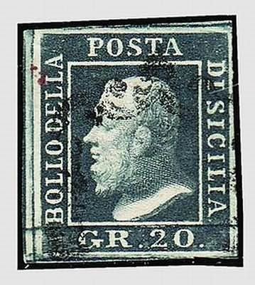 Lotto 1341 | SICILIA - 1859, 20 gr.nero ardesia (13a). Di pregio. (Cert. Bottacchi).(USATO)