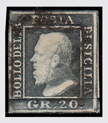 SICILIA - 1859, 20 gr ardesia scuro (13c) ben marginato ed annullato. (Em.Diena - Colla).(USATO)