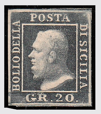 SICILIA - 1859, 20 gr.ardesia violaceo (13d) bell'esemplare. (Giulio Bolaffi)..(GOMMA ORIGINALE)