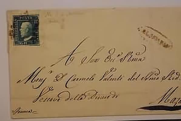 SICILIA ANNULLAMENTI - 1859, CALATAFIMI ovale senza fregi, rosso + ferro di cavallo (p.13) su 2 gr. (7), su lettera per Mazzara.(LETTERA)