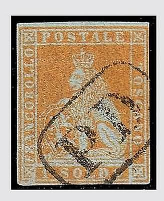 Lotto 1388 | TOSCANA - 1851, 1 soldo bistro arancio su grigio (2d) fresco e ben marginato....