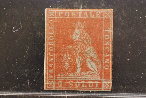 TOSCANA - 1851, 2 soldi scarlatto su azzurro (3) esemplare fresco e di colore...