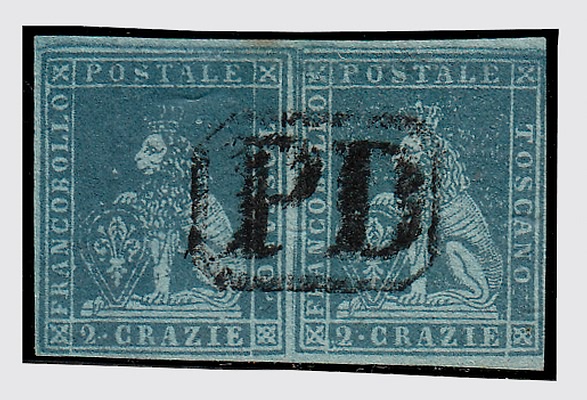 Lotto 1404 | TOSCANA - 2 cr. azzurro vivo su azzurro (5b) coppia orizzontale ben...