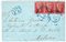 TOSCANA - 1859, Governo provvisorio, 1 cr.carminio (12) striscia orizzontale di tre ben marginata usata su lettera da Firenze per Milano il 21/12/59, in periodo di tardo governo provvisorio. Annulli di Firenze e PD in azzurro. Rarità.(LETTERA)